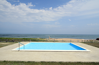 クラピア広場には小さな野外プール(7m×5m)も完備しています。