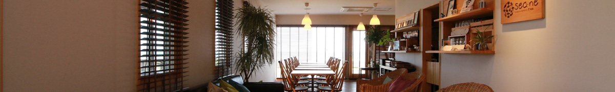 海音はシーネと読みます。地元野菜に愛着をもってつくる料理や、地元の水産物・畜産物などの食材の数々を色々なかたちでお楽しみいただけるカフェ&ダイニングです。お泊りのお客さまの夕食・朝食はもちろんのこと、お昼のランチや、ちょっとしたお茶会や女子会にもご利用いただけます。